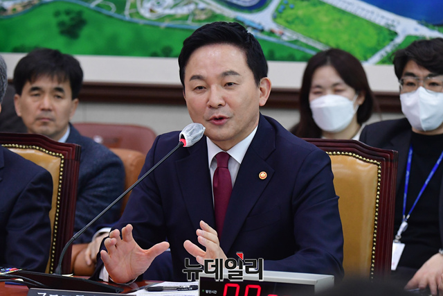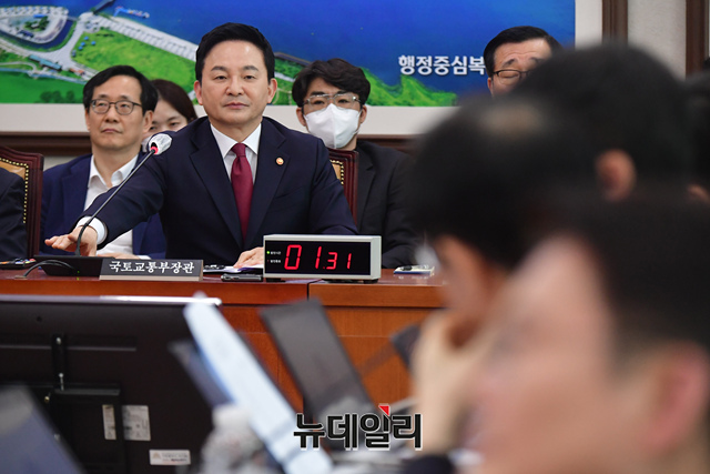 원희룡 국토교통부 장관이 24일 오전 국회에서 국토위 전체회의에 출석해 의원들의 질문에 답하고 있다.