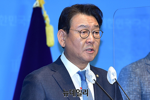 김교흥 더불어민주당 의원이 24일 오후 국회 소통관에서 검찰 출신 국가수사본부장 임명 관련 성명을 발표하고 있다.