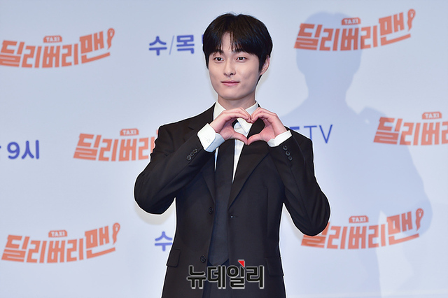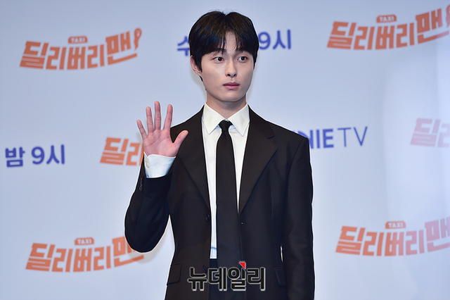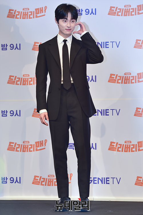 배우 윤찬영이 28일 오후 서울 구로구 신도림 디큐브시티에서 열린 지니TV 오리지널 '딜리버리맨' 제작발표회에서 포즈를 취하고 있다.