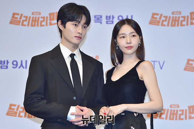 배우 윤찬영, 방민아가 28일 오후 서울 구로구 신도림 디큐브시티 더 세인트에서 열린 지니TV 오리지널 '딜리버리맨' 제작발표회에서 포즈를 취하고 있다.