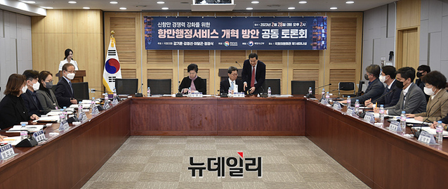 이달곤 국민의힘 의원이 28일 오후 국회 의원회관에서 열린 '신항만 경쟁력 강화를 위한 항만행정서비스 개혁 방안 공동 토론회'에서 개회사를 하고있다.