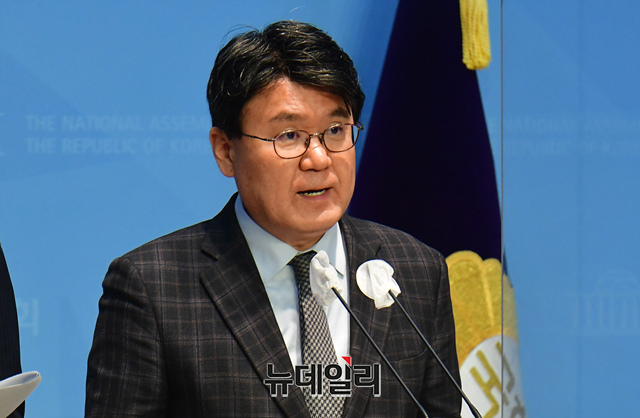 황운하 더불어민주당 의원이 2일 오전 국회 소통관에서 김기현 국민의힘 당대표 후보 울산 KTX인근 땅투기 의혹 관련 기자회견을 하고 있다.