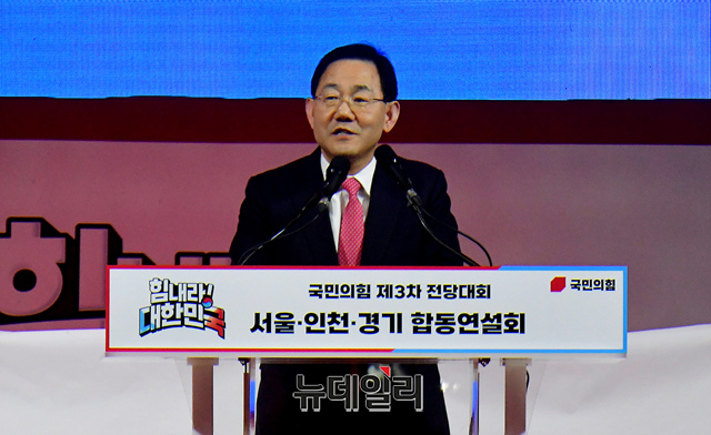 주호영 국민의힘 원내대표가 2일 오후 경기 고양시 고양체육관에서 열린 제3차 전당대회 서울·인천·경기 합동연설회에서 인사말을 하고 있다. (경기 고양=이종현 기자)