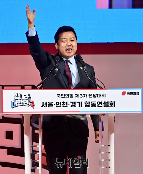 장예찬 국민의힘 청년 최고위원 후보가 2일 오후 경기 고양시 고양체육관에서 열린 제3차 전당대회 서울·인천·경기 합동연설회에서 정견발표를 하고 있다. (경기 고양=서성진 기자)