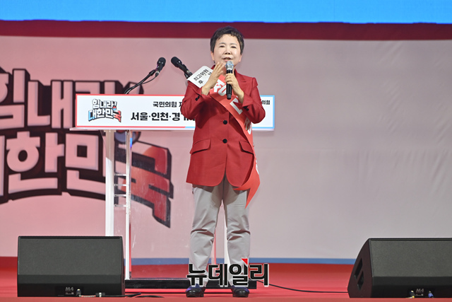 정미경 국민의힘 최고위원 후보가 2일 오후 경기 고양시 고양체육관에서 열린 제3차 전당대회 서울·인천·경기 합동연설회에서 정견발표를 하고 있다. (경기 고양=서성진 기자)