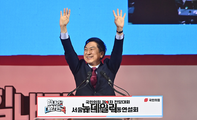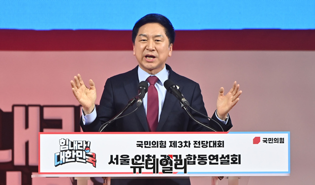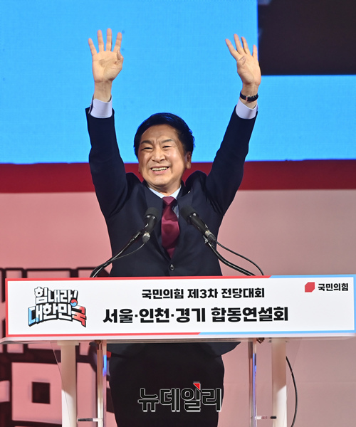 김기현 국민의힘 당대표 후보가 2일 오후 경기 고양시 고양체육관에서 열린 제3차 전당대회 서울·인천·경기 합동연설회에서 정견발표를 하고 있다. (경기 고양=서성진 기자)