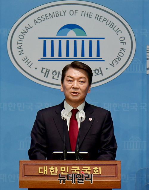 안철수 국민의힘 당대표 후보가 3일 오전 국회 소통관에서 단일화 1주년 성명 발표 기자회견을 갖고 있다.