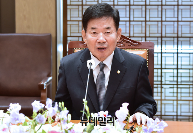 [포토] 지진 의연금 전달식에서 발언하는 김진표 의장