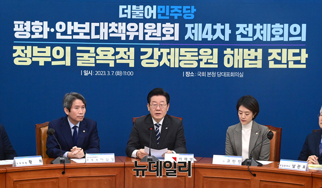 이재명 더불어민주당 대표가 7일 오전 국회에서 열린 평화·안보대책위원회 제4차 전체회의에서 모두발언을 하고 있다.
