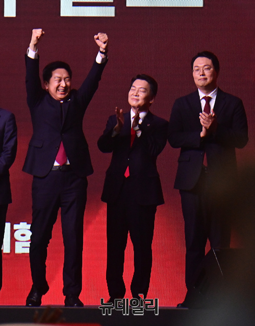 [포토] 환호하는 김기현 국민의힘 신임 대표