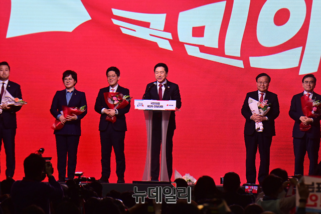국민의힘 차기 당대표에 당선된 김기현 후보가 8일 오후 경기도 고양시 일산서구 킨텍스에서 열린 국민의힘 제3차 전당대회에서 수락연설을 하고 있다. (경기 고양=이종현 기자)