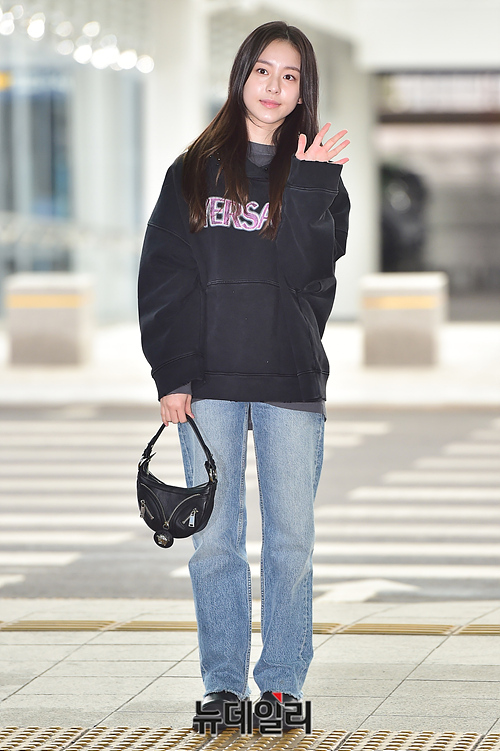배우 박지후가 8일 오후 인천공항으로 베르사체 2023 가을·겨울 컬렉션 패션쇼 참석을 위해 출국하고 있다.