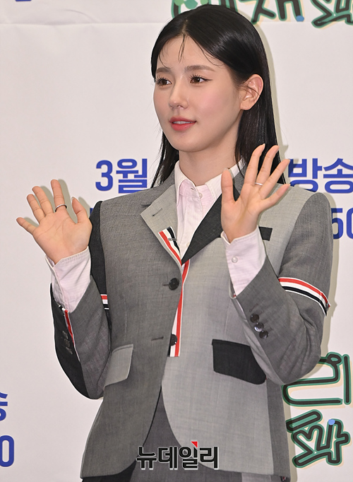 걸그룹 (여자)아이들 맴버 미연이 9일 오전 서울 마포구 스탠포드 호텔에서 열린 ENA 예능 '혜미리예채파' 제작발표회에서 포토타임을 갖고있다.
