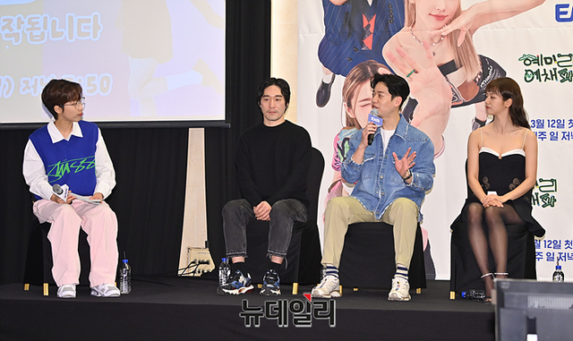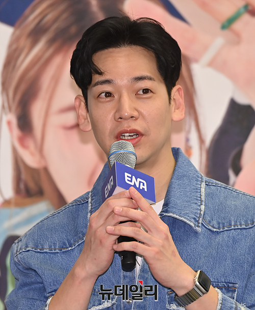 이태경 PD가 9일 오전 서울 마포구 스탠포드 호텔에서 열린 ENA 예능 '혜미리예채파' 제작발표회에서 인터뷰를 하고 있다.