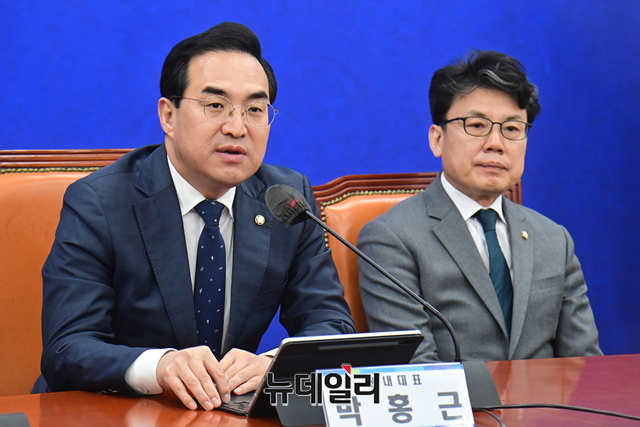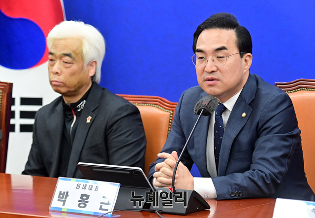 박홍근 더불어민주당 원내대표가 9일 오전 국회에서 열린 10.29 이태원 참사 유가족협의회 간담회에서 발언을 하고 있다.