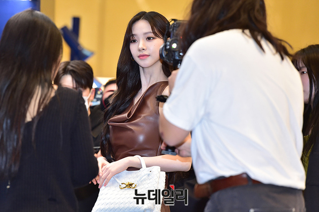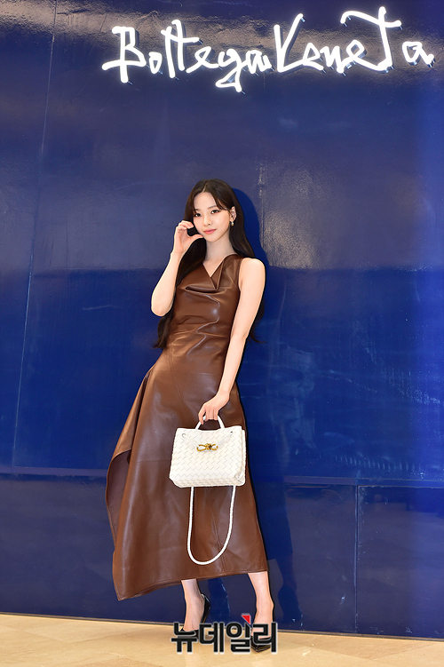 에스파 카리나가 9일 오후 서울 송파구 에비뉴엘 월드타워점에서 열린 '보테가 베네타 2023 여름 컬렉션 론칭' 팝업스토어 오픈행사에서 포즈를 취하고 있다.