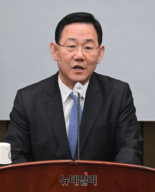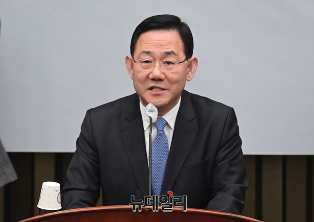 주호영 국민의힘 원내대표가 10일 오전 국회에서 열린 정책의원총회에 참석해 모두발언을 하고 있다.