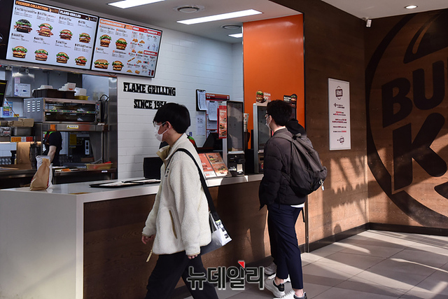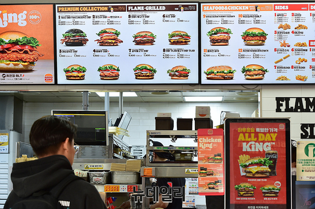 햄버거 전문점 버거킹이 햄버거와 음료 등 제품 가격을 인상한 10일 오후 상암동에 한 매장에서 소비자가 햄버거를 주문하고 있다.