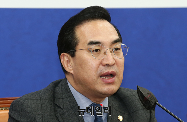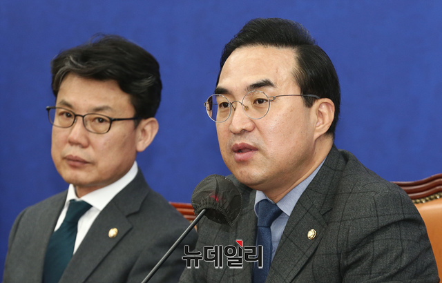 박홍근 더불어민주당 원내대표가 14일 국회에서 열린 원내대책회의에서 발언하고 있다.