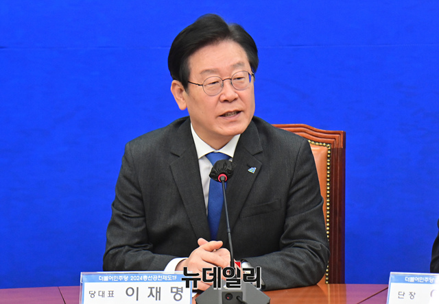 이재명 더불어민주당 대표가 14일 국회에서 열린 '2024 총선 공천제도TF 제1차 회의'에서 모두발언을 하고 있다.
