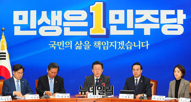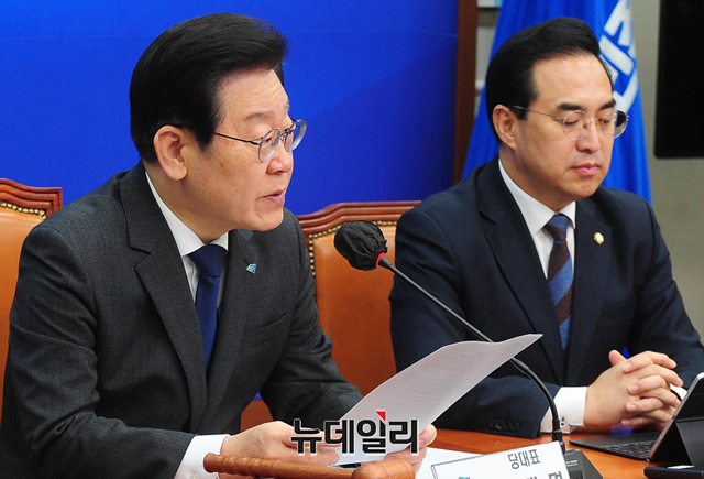 이재명 더불어민주당 대표가 15일 오전 국회에서 열린 최고위원회의에서 모두발언을 하고 있다.