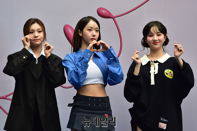 걸그룹 비비지가 15일 오후 서울 동대문디자인플라자에서 열린 '2023 F/W 서울패션위크(Seoul Fashion Week)'에 참석해 포즈를 취하고 있다.