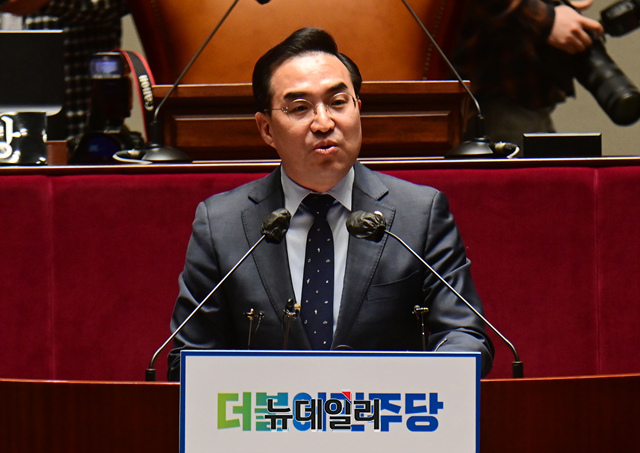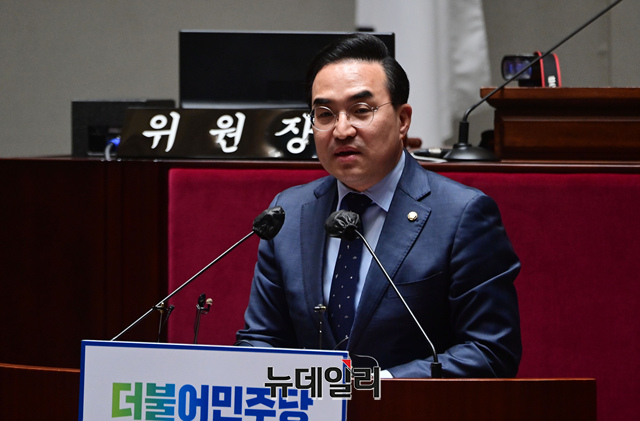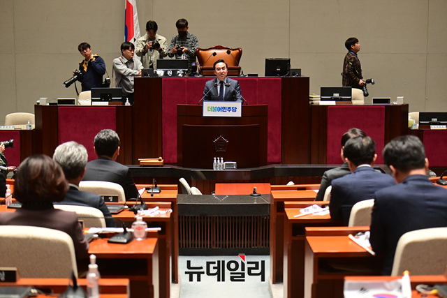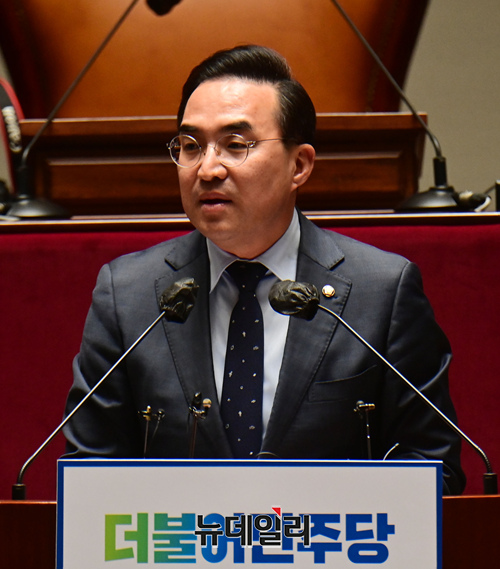 박홍근 더불어민주당 원내대표가 16일 국회에서 열린 의원총회에 참석해 모두발언을 하고 있다.