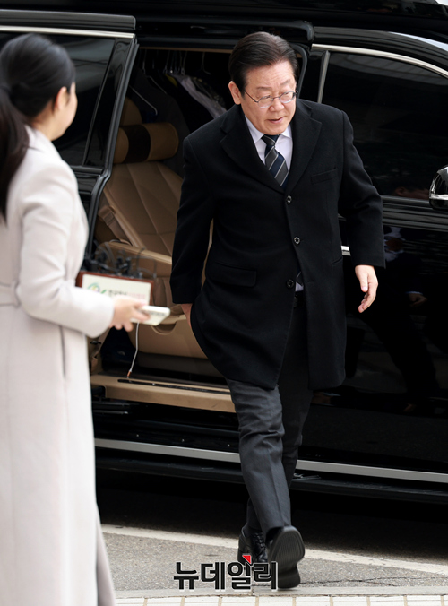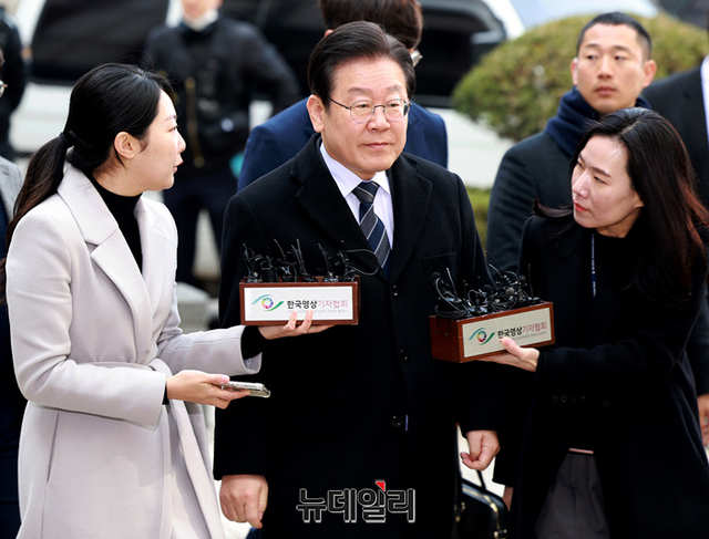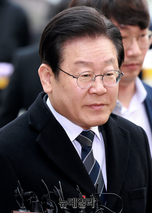 공직선거법 위반으로 재판에 넘겨진 이재명 더불어민주당 대표가 17일 오전 서울 서초구 중앙지법에서 열린 2차 공판에 출석하고 있다.
