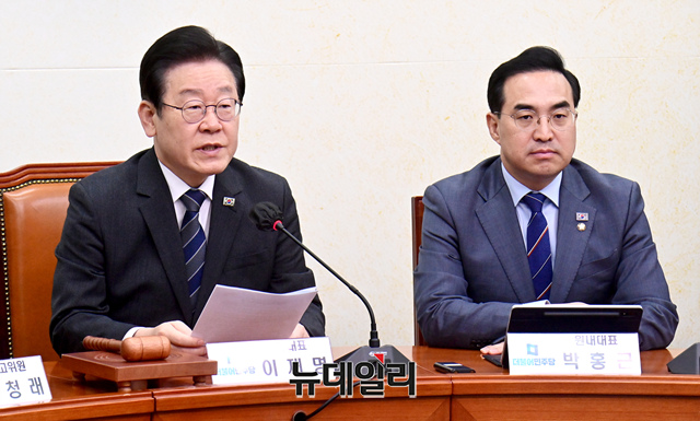 이재명 더불어민주당 대표가 17일 국회에서 열린 최고위원회의에서 모두발언을 하고 있다.