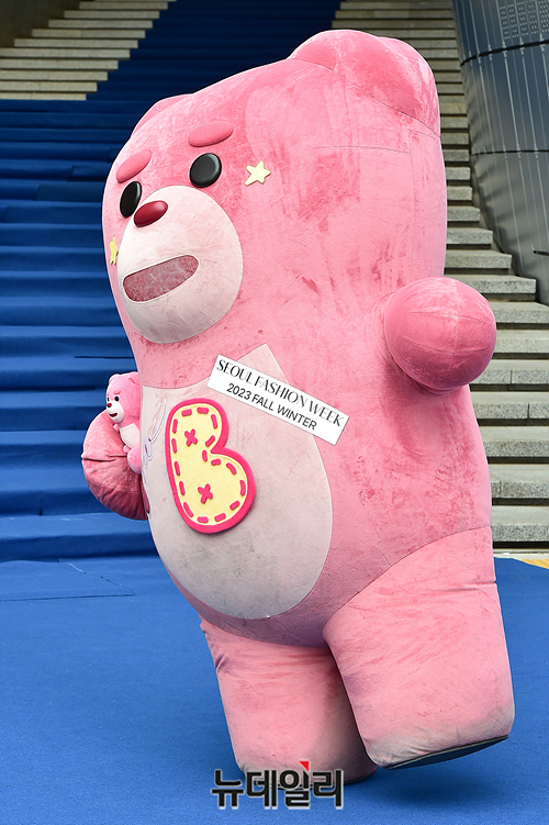 [포토] 서울패션위크에 등장한 롯데홈쇼핑 핑크곰 '벨리곰'