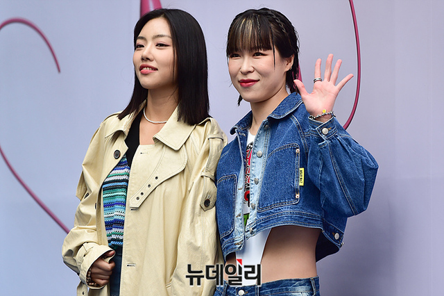댄서 원트 모아나(왼쪽부터)와 효진초이가 17일 오후 서울 중구 DDP에서 열린 서울패션위크 '홀리넘버7(HOLYNUMBER7)' 포토콜에서 포즈를 취하고 있다.