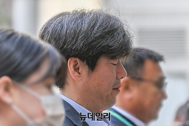 남욱 변호사가 20일 오전 서울 서초구 중앙지방법원에서 열린 특정범죄가중처벌등에관한법률위반 공판에 출석하고 있다.