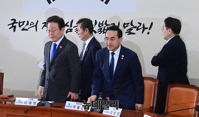 이재명 더불어민주당 대표가 20일 오전 국회에서 열린 최고위원회의에 참석하기 위해 입장하고 있다.
