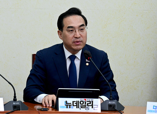 박홍근 더불어민주당 원내대표가 20일 오전 국회에서 열린 최고위원회의에 참석해 모두발언을 하고 있다.
