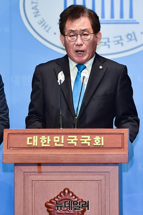 유기홍 더불어민주당 의원이 20일 오후 국회 소통관에서 전두환 전 대통령 추징 3법 통과를 촉구하는 입장을 밝히고 있다.