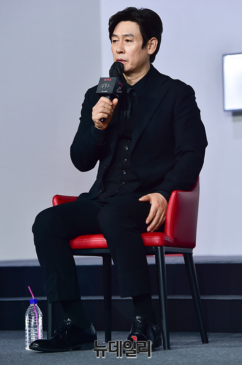 배우 설경구가 21일 오전 서울 강남구 그랜드 인터컨티넨탈 파르나스 서울에서 열린 넷플릭스 '길복순' 제작보고회에서 인사말을 하고 있다.