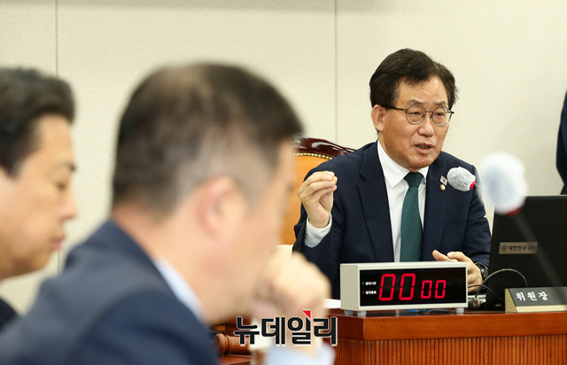 유기홍 교육위원장이 21일 오전 국회에서 열린 교육위원회 전체회의에서 정순신 변호사 아들의 학교폭력과 관련한 청문회 안건을 의결하고 있다.