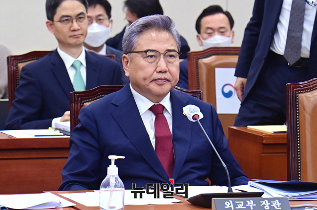 박진 외교부 장관이 21일 오후 국회에서 열린 외교통일위원회 전체회의에 출석해 의원들의 질문에 답하고 있다.