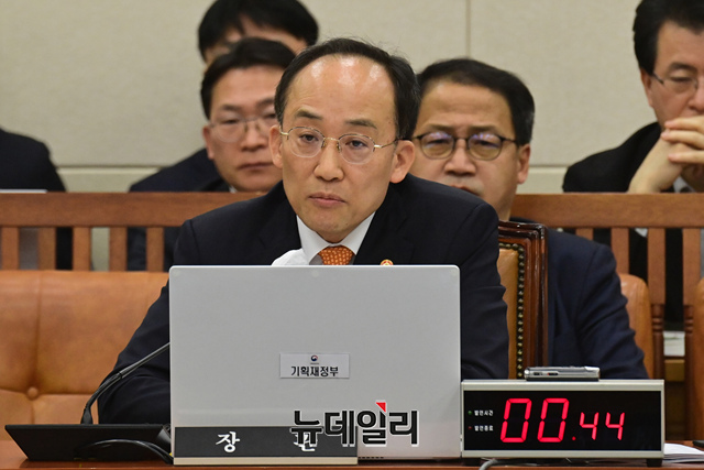 추경호 경제부총리 겸 기획재정부 장관이 22일 국회에서 열린 기획재정위원회 전체회의에 출석해 의원들의 질문에 답하고 있다.