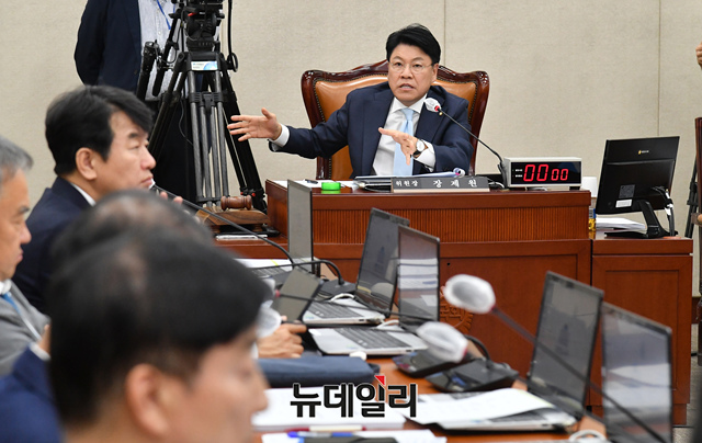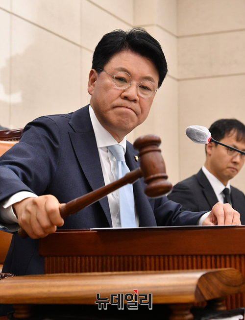 장제원 국회 행안위원장이 22일 국회에서 열린 행정안전위원회 전체회의에서 의사진행을 하고 있다.