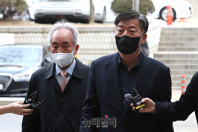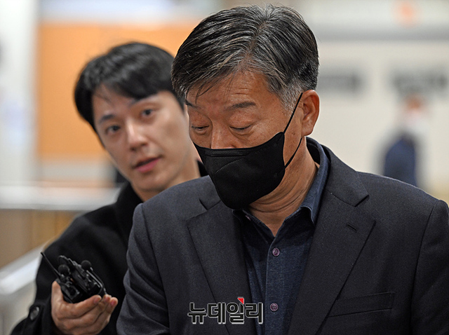 직권남용권리행사방해등 혐의로 기소된 김홍희 전 해양경찰청장이 24일 오전 서울 서초구 중앙지법에서 열린 '서해 피격 은폐 사건'관련 첫 공판에 출석하고 있다. (사진=공동취재단)