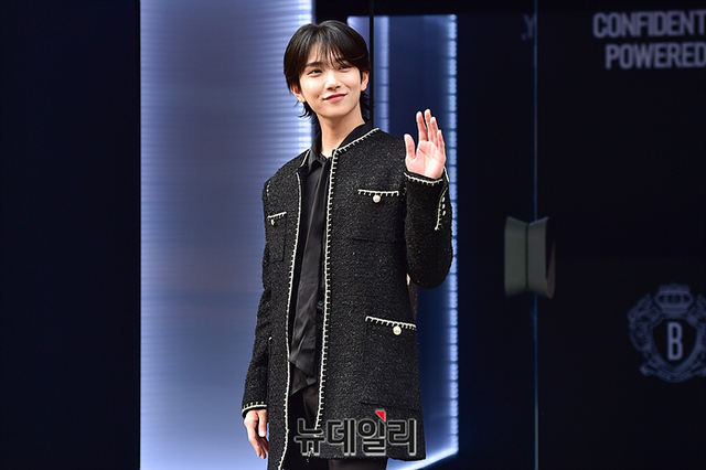 세븐틴 조슈아가 24일 오후 서울 성동구 SCENE에서 열린 뉴욕 코스메틱 브랜드 바비브라운 팝업스토어 오픈 행사에서 포즈를 취하고 있다. 팝업은 25일부터 26일까지 네이버 예약시 이용 가능하다.