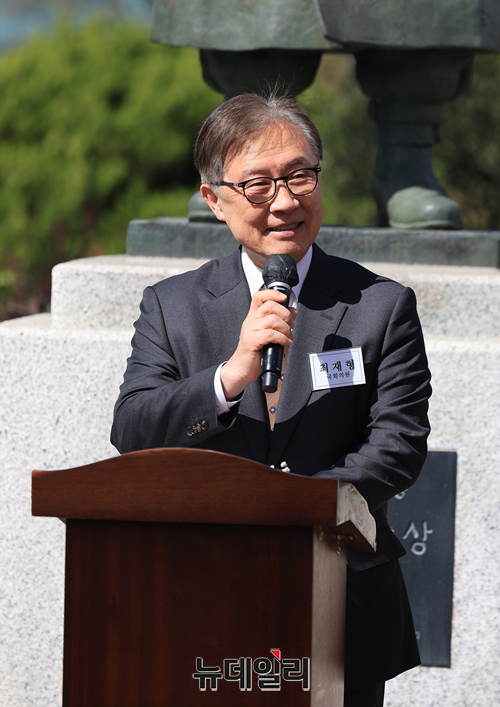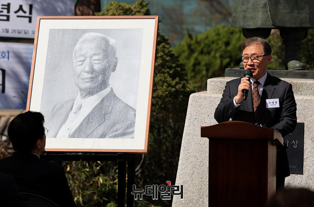 최재형(서울 종로) 국민의힘 의원이 26일 오후 서울 종로구 이화장에서 열린 건국대통령 우남 이승만 탄신 148주년 기념행사에서 인사말을 하고 있다.