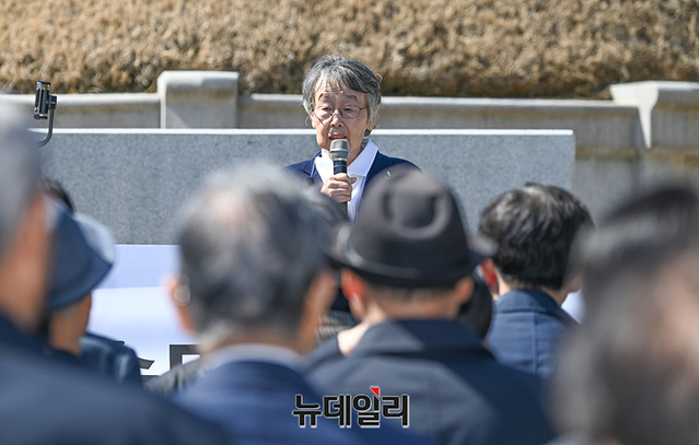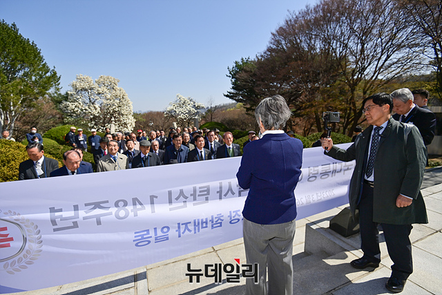 이인호 명예교수가 '대한민국 건국 대통령 이승만의 탄생 148주년'을 맞아 26일 오전 서울 동작구 국립서울현충원에서 기념사를 하고 있다.