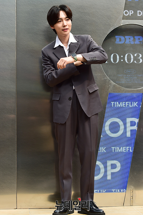 위너 김진우가 28일 오전 서울 성동구 성수동에 오픈한 타임플릭 성수 기념행사에서 포즈를 취하고 있다.