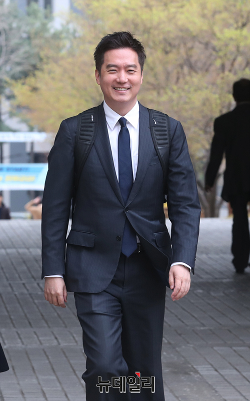 김세의 가로세로연구소 대표가 28일 오후 서울 서초구 중앙지방법원에서 열린 정보통신망이용촉진 및 정보보호등에 관한 법률위반 관련 재판에 출석하고 있다.