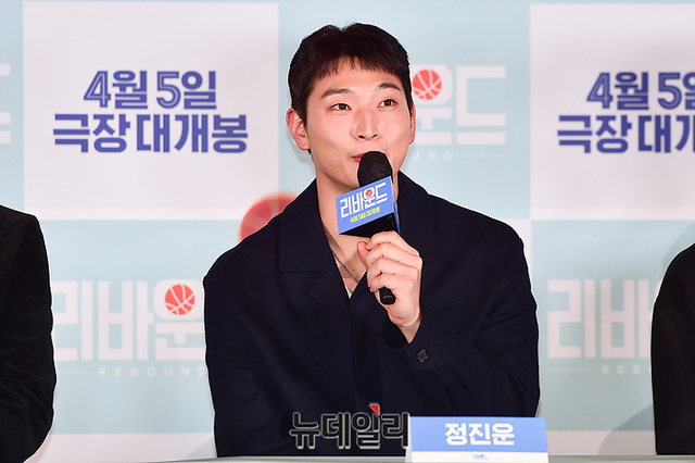 배우 정진운이 28일 오후 서울 CGV 용산아이파크몰에서 열린 영화 '리바운드(감독 장항준)' 언론시사회에서 인사말을 하고 있다. 4월 5일 극장 개봉.