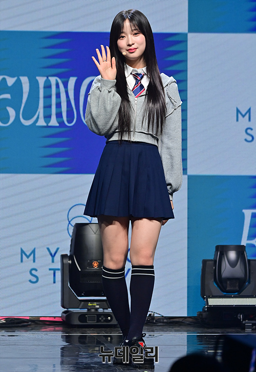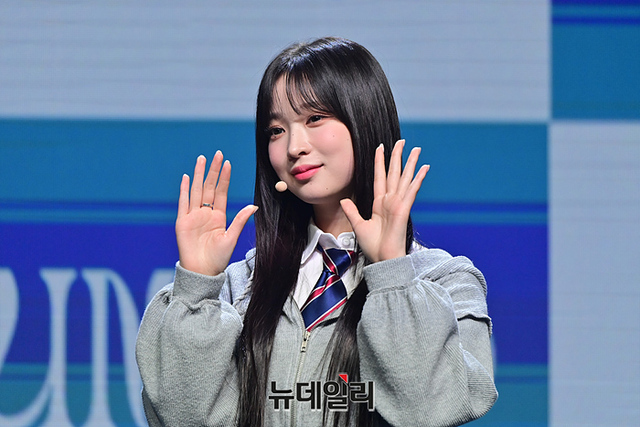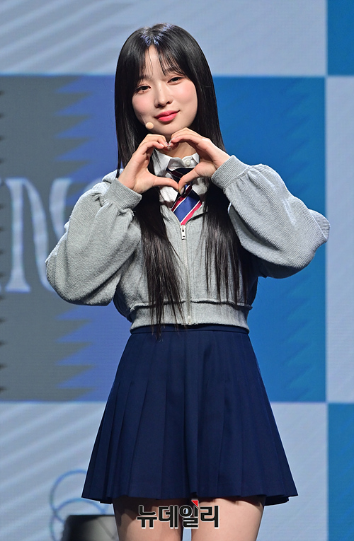 걸그룹 빌리(Billlie) 하루나가 28일 오후 서울 마포구 신한pLay 스퀘어에서 열린 미니 앨범 'The Billage of perception: chapter three(더 빌리지 오브 퍼셉션: 챕터 쓰리)' 발매 기념 쇼케이스에서 포토타임을 갖고있다.