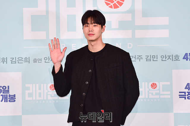 배우 김택이 28일 오후 서울 CGV 용산아이파크몰에서 열린 영화 '리바운드(감독 장항준)' 언론시사회에서 포즈를 취하고 있다. 4월 5일 극장 개봉.