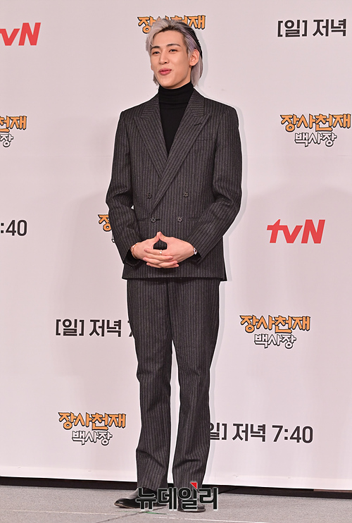 GOT7 뱀뱀이 29일 오전 서울 마포구 서울가든호텔에서 열린 tvN 예능 '장사천재 백사장' 제작발표회에서 포토타임을 갖고 있다.